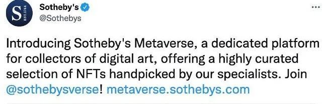 僅管這次拍賣和佳士得 Beeple 拍出的價格相比差距很大,但這也標志著蘇富比開始正式涉足 NFT 領域,開啟了 NFT 的佈局之路。