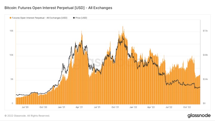 我們可以看到 OI 局部低點也與 11 月 14 日週一比特幣低於 16,000 美元的價格一致。