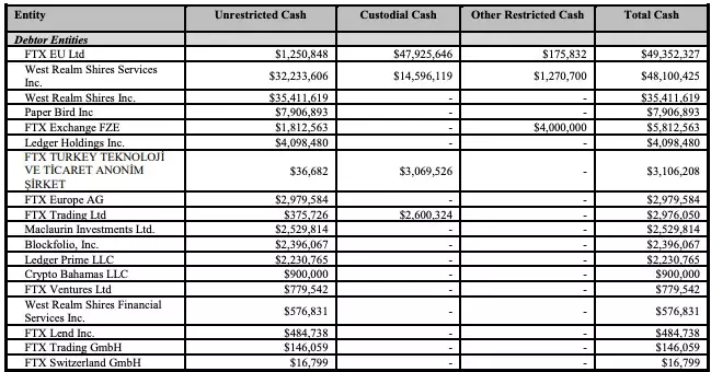 混亂現金管理也導致無法清楚的掌握FTX集團在申請破產保護時持有的金額究竟有多少?而據目前Ray與會計師事務所Alvarez & Marsal查核,到目前為止已經找到了歸屬於FTX各實體的大約5.6億美元。