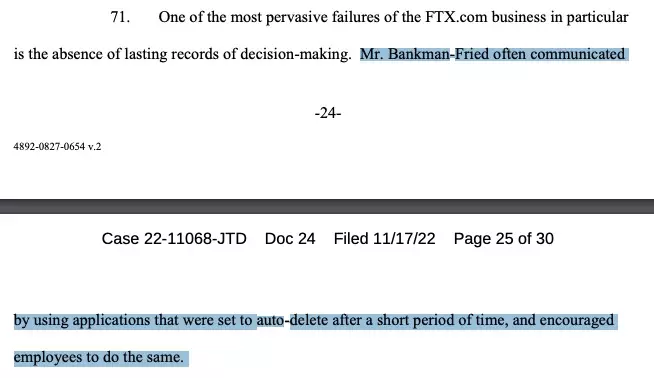 不僅如此,為了隱藏所有的決定和與員工的溝通,SBF還鼓勵經常使用“閱後即焚”軟件並鼓勵員工也這麼做,而這也使得集團所有的製定決策的會議記錄無法被獲得,且部分僱員身份無法被確認。