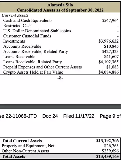 按照不同的業務,文件將FTX集團按照不同的業務分為WRS Silo、Alameda Silo、Ventures Silo和Doctom Silo這4種業務組,並公佈了截至9月30日的資產負債表。其中,FTX US的資產負債表顯示,截至9月30日的資產為13.6億美元。