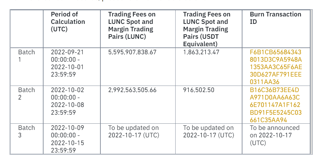 為響應 LUNC 社區關於在保持用戶良好交易體驗的同時銷毀交易費用的建議,幣安將實施銷毀機制……