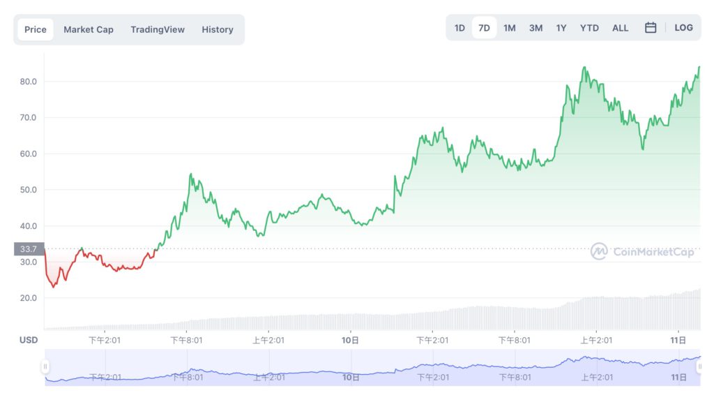 以太坊域名服務(Ethereum Name Service,ENS)本週二正式空投 ENS 代幣,代幣價格更是一路上漲。在昨天幣安正式上架之後,在不到一天的時間內就飆漲接近一倍,價格來到 84.78 美元、市值已超過 12 億美元,成績令人驚艷。