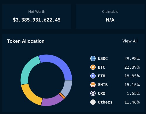 此前,Crypto.com 也將加密鏈上錢包中持有的代幣儲備數據公佈在鏈上數據分析平台 Nansen 上,數據顯示,當前該交易所代幣儲備約 33.8 億美元,其中 USDC 接近 3 成佔比最高,其他佔比前五的幣種依序為: BTC(22.89%)、ETH(18.85%)、柴犬幣(15.15%)、平台幣 CRO(1.65%) 。