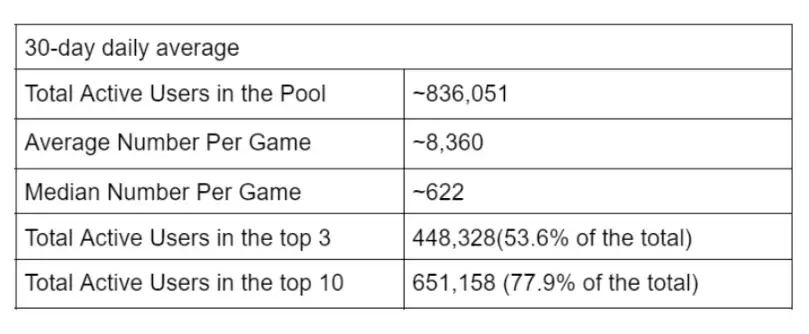 - Web3 遊戲領域的大多數用戶來自幾款頂級遊戲;