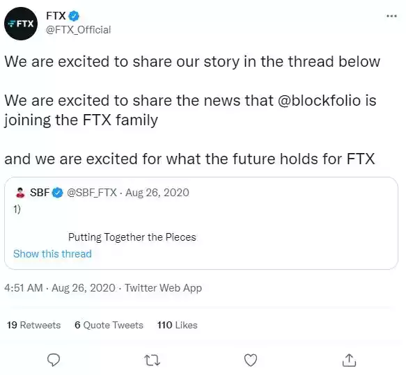 公告是 FTX 推特市場策略的主要一環。他們保證把任何產品發布和收購消息通知粉絲: