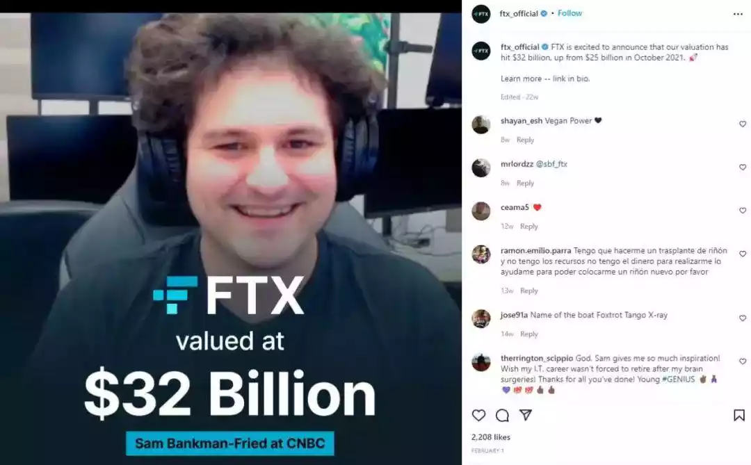在 Instagram 上,FTX 宣布其估值達到 320 億美元,高於 250 億美元: