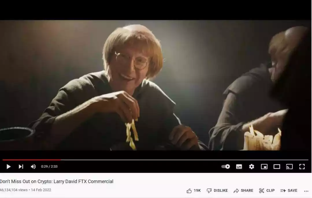 FTX 與喜劇演員 Larry David 合作,作為 NBC 超級盃中場秀前 60 秒廣告「不要錯過」的宣傳活動一部分。