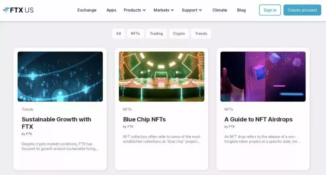 甚至,FTX 還有部落格,包含加密貨幣,NFT 等內容供大家學習: