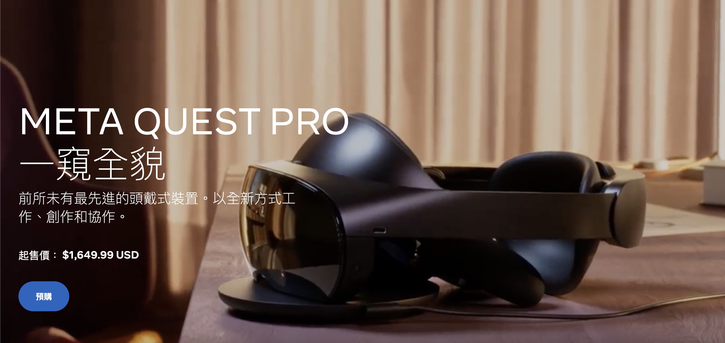 在 10 月 12 日,Meta 公佈了新一代 VR 頭戴裝置 Meta Quest Pro ,比起前一代 Meta Quest 2 高了 4 倍、在台灣預售高達 1649.99 美元的價格,似乎意味著 Meta 自信滿滿。祖克伯在《The Verge》訪問,提到 Quest Pro 一部分的目標客群是使用 VR 進行專業工作的專業人士﹕