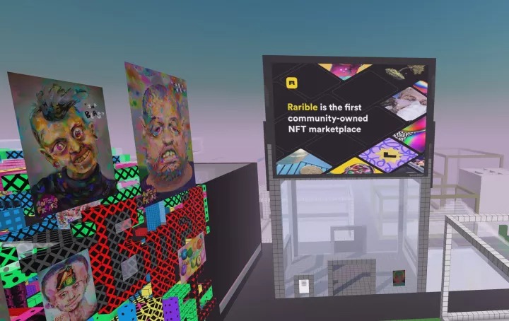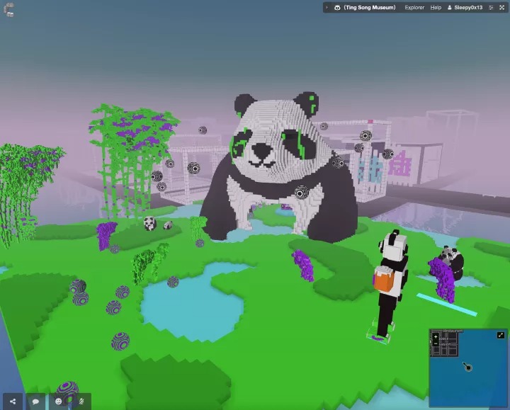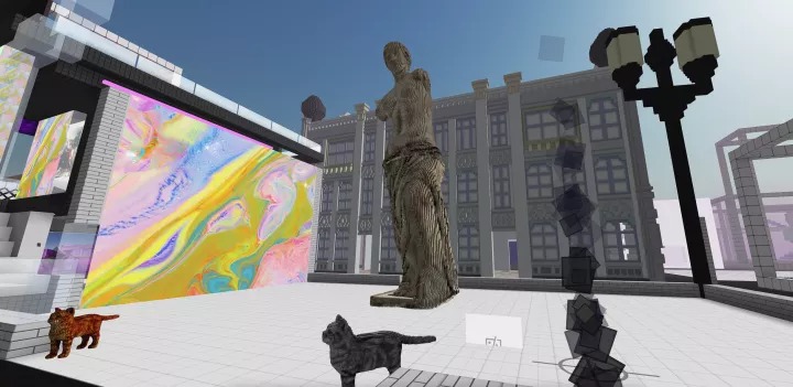 最常見的便是加密藝術展,用戶可以直接將自己創作、收藏家 NFT 掛在建築中,觀眾通過點擊即可跳轉到購買頁面。舉辦大型藝術展時,只需點擊傳送門即可輕鬆前往其他展館。