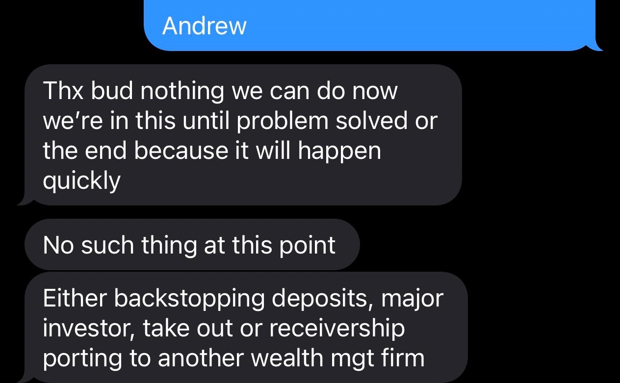 消息來源提到「我們現在無能為力,我們一直試圖在解決問題」、 「這將很快發生」、 「解決方案?為存款提供擔保、主要投資者、被接管?這太可怕了」。