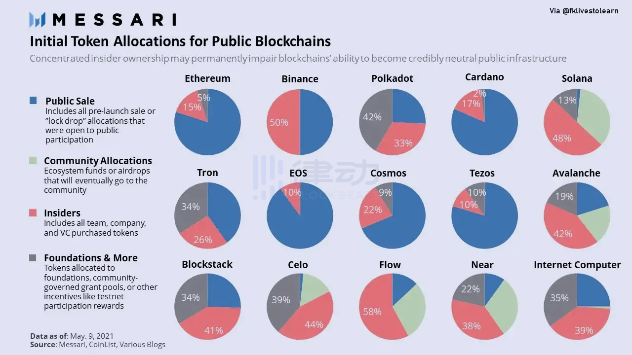 在初始代幣分配中,根據 Messari 的數據顯示,Solana 大約 48% 的代幣由內部人士擁有,包括 Solana Labs 團隊成員和風險投資機構,這導致「VC 鏈」的污名始終伴隨 Solana。