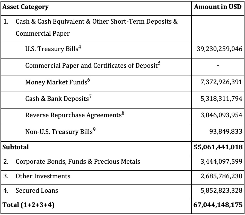 美國國債占 Tether 儲備的最大比例,金額高達 392 億,約為總儲備額的 58%。其餘資產包括分別達數十億美元規模的貨幣市場基金、現金、逆回購協議、公司債券和貴金屬。