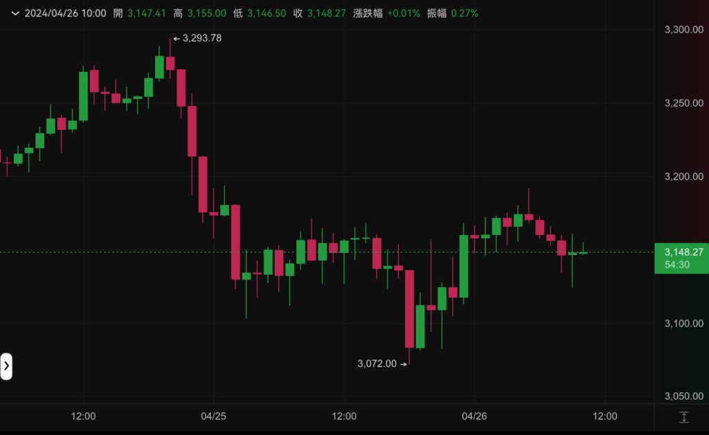 以太坊走勢與 BTC 雷同,一度跌破 3100 美元後拉回,撰稿時報 3,148 美元,近 24 小時小幅上漲 0.17%。
