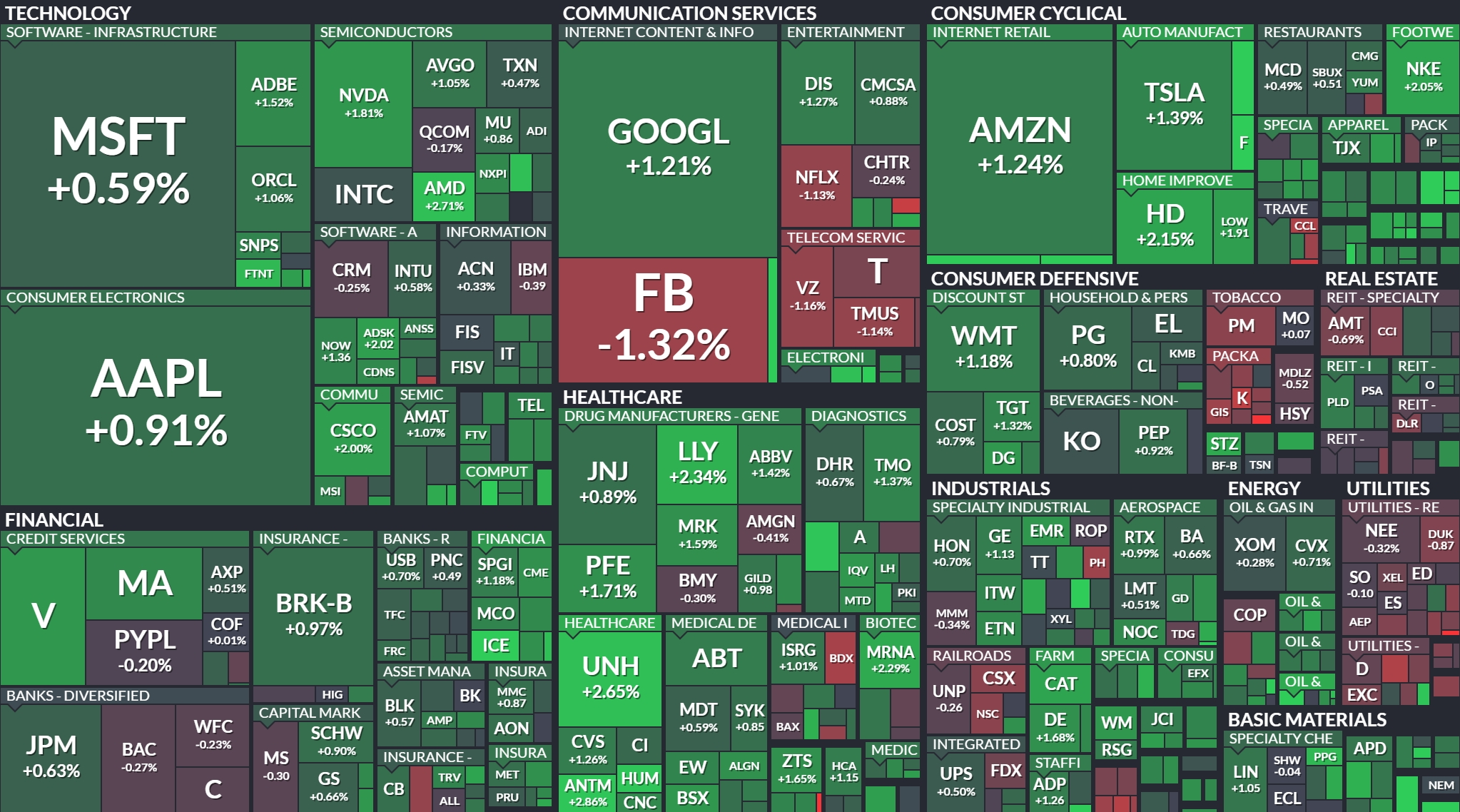 大型科技股上漲,引領大盤普漲。蘋果上漲 0.9% ,亞馬遜上漲 1.2%,給標普 500 指數和納斯達克指數帶來最大提振。特斯拉、 Alphabet 漲幅也均超過 1%。