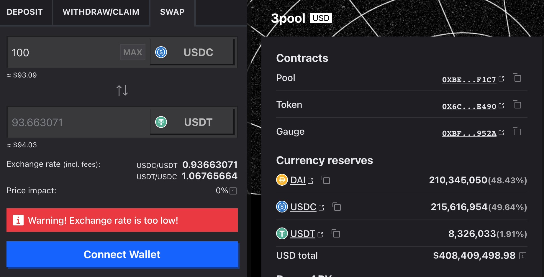 USDC 現脫鉤 7%、3pool 池 USDT 佔比暴降至 1.91%